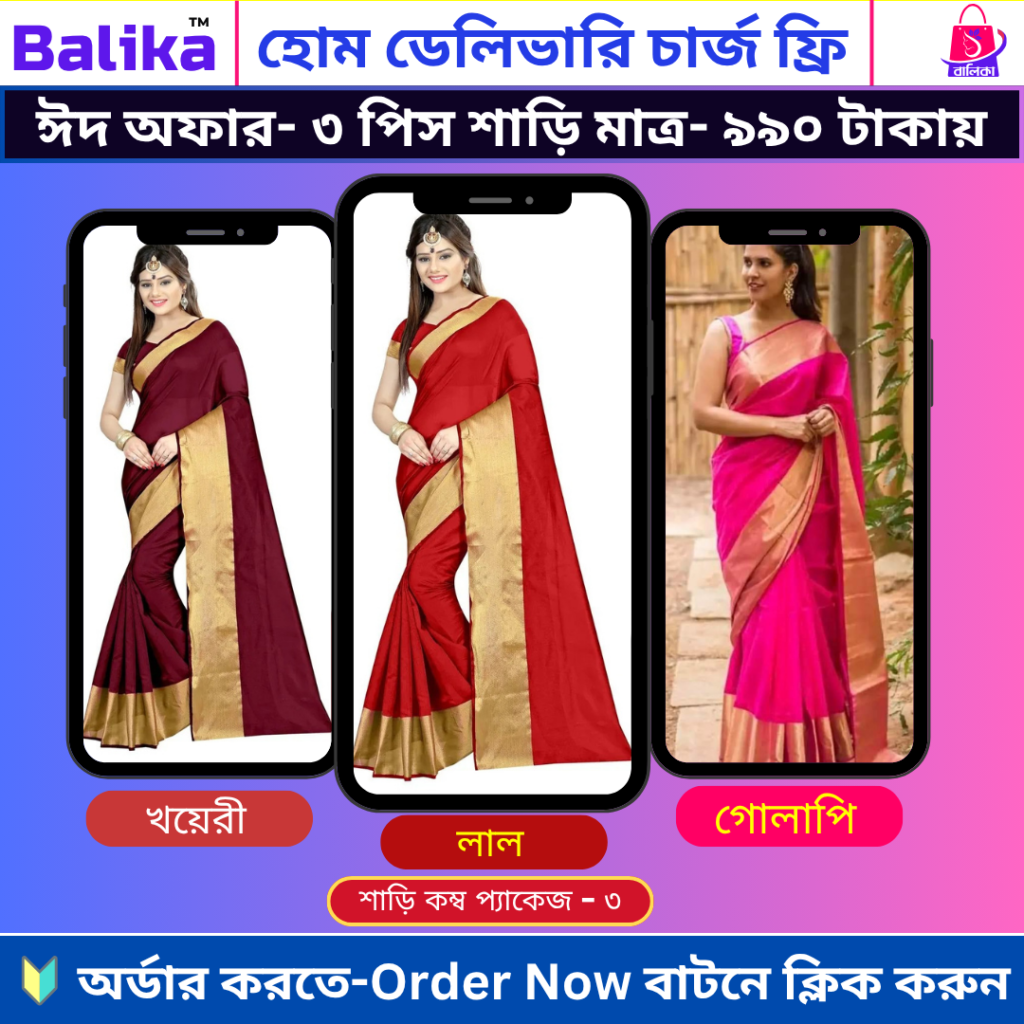 🔥#ঈদ_স্পেশাল_অফার-3 পিস শাড়ী মাত্র-৯৯০ টাকায়🔥